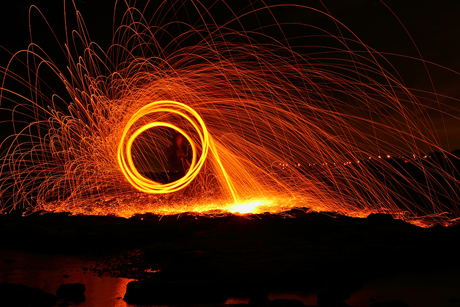 This collection of images were captured during a couple of night time excursions by members of my ND400 Long Exposure group on Facebook. The patterns are created by igniting steel wool packed inside a metal kitchen whisk and then swinging the whisk in various ways to create the desired effects.
