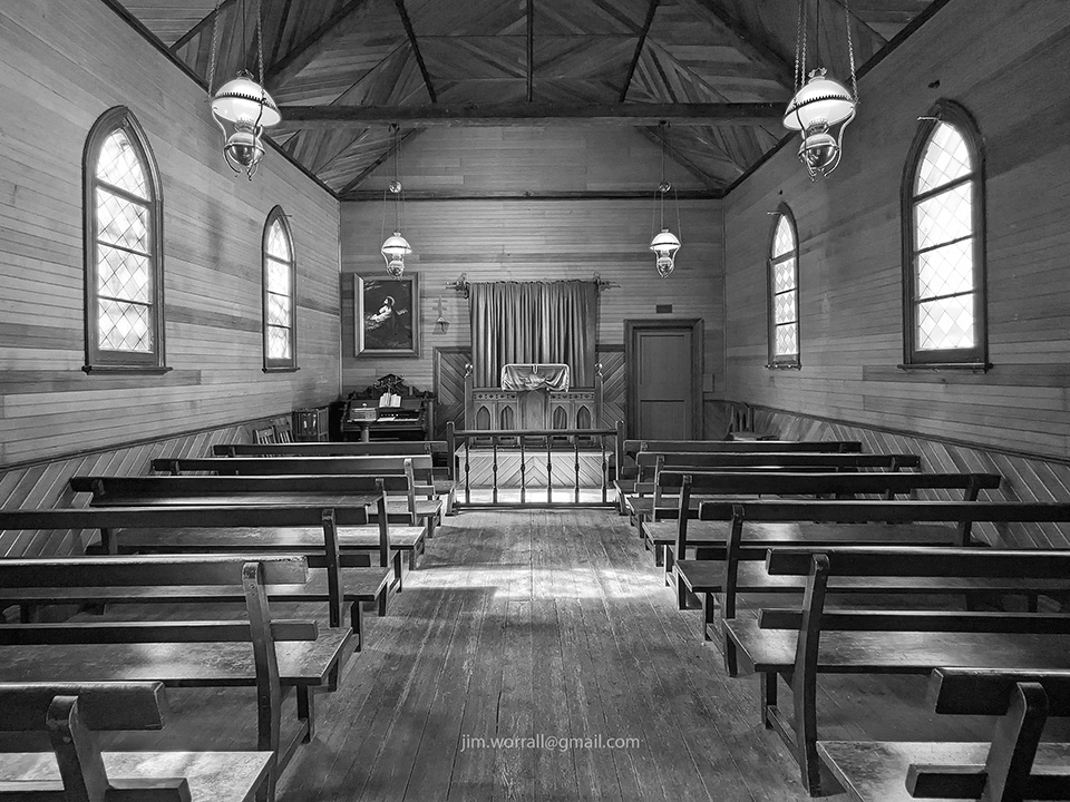 Inside the Old Krowera Church, now located at Coal Creek Community Park and Museum.