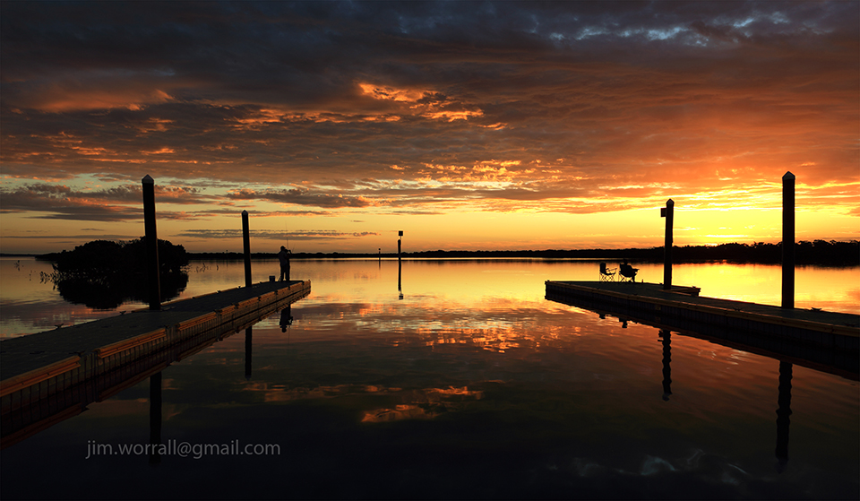 The image below shows the edge of the boat ramp in the foreground with the distant land and sky lit by the sun setting behind me.