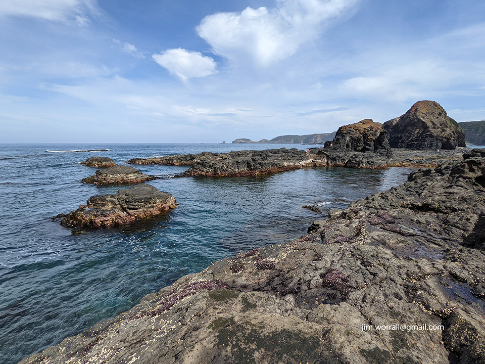 After crossing the creek it’s a short walk to the beautiful rock formations and platforms where at low tide there are lots of small crystal clear rock pools exposed.