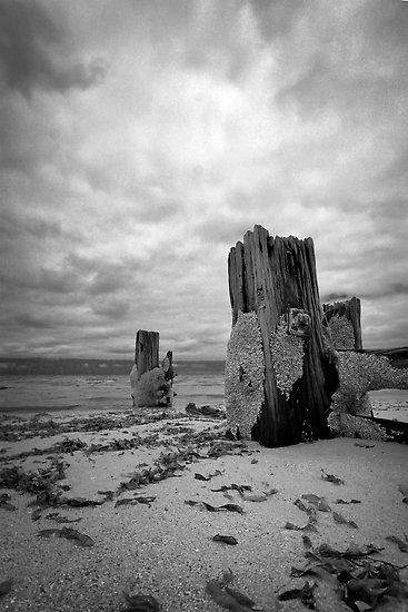 Amongst the photographic gems that Grantville beach makes available to photographers is a set of 3 rows of short pylons.