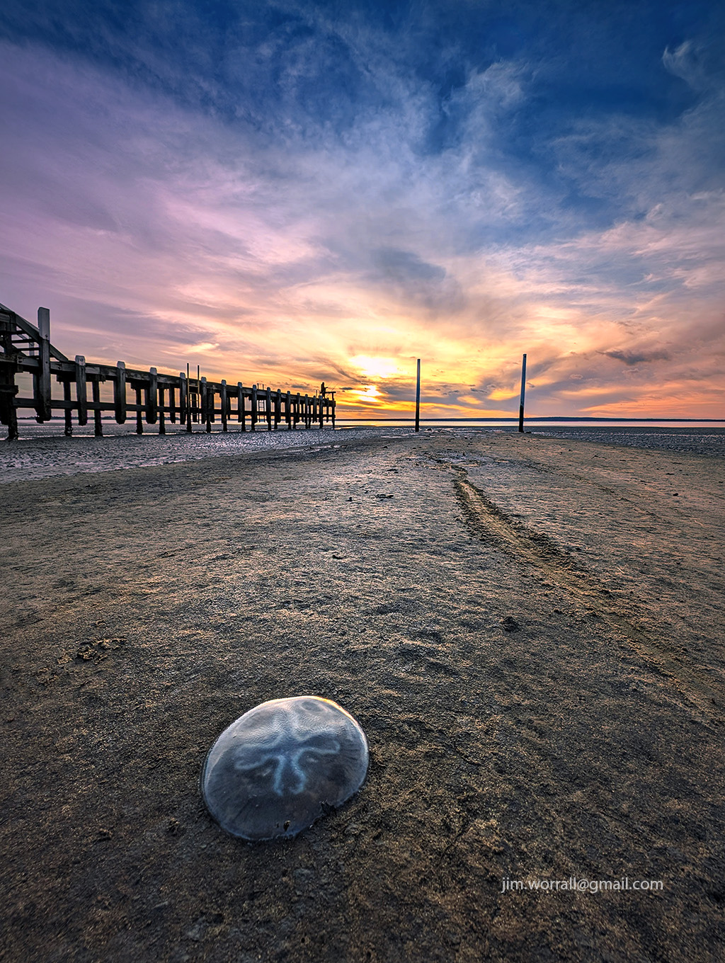 A lone jellyfish stranded by the receding tide at Grantville Boat Ramp.