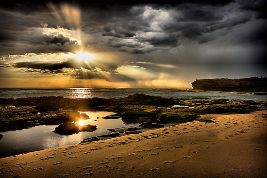 It was a taken on the beach at Blairgowrie as a storm was rolling in from the ocean. It was an amazing storm to see, …dark swirling clouds, lightning, halos formed by the sun shining through sheets of rain, ….marvelous stuff !