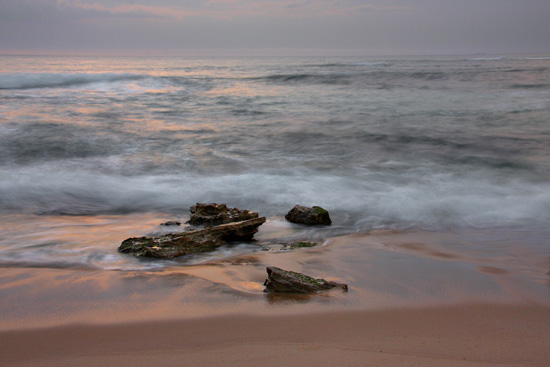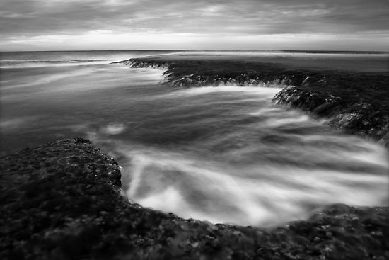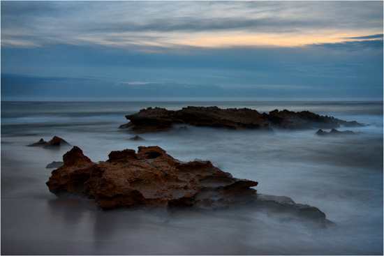 Return to Primal is a long exposure taken after sunset. The true motion of the waves disguised by the slow shutter speed.