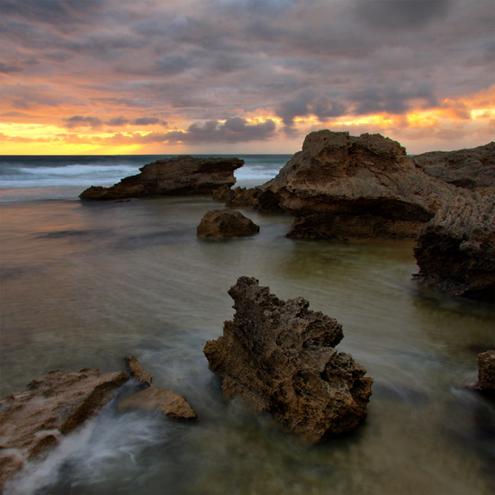 I never get sick of visiting this ocean coastline along the Mornington Peninsula. The rocky landscape remains as a constant, however the continually changing sky and tide never fail to create a new captivating scene.