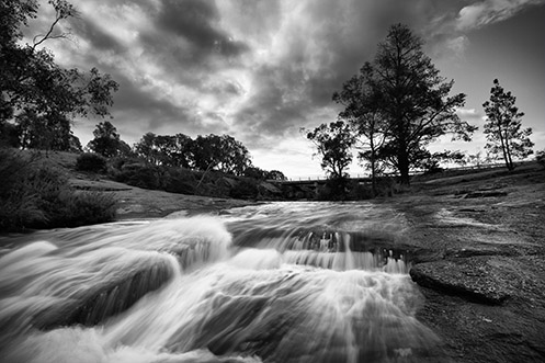 Below – “Polly’s Overflow” – Looking upstream from the pool, the water traverses a gentle granite plateau then strikes some foreground boulders whipping the water into a frenzy before it finally enters the tranquility of the pool. This image is available to buy as a print at my Zazzle and RedBubble sites.