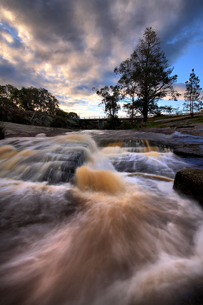 I suspect this caused lot of the brown silt present in the water. This caused an interesting effect in the water with the deeper sections of the flow taking on a brownish tinge and the shallow sections appearing bluish during long exposure shots.