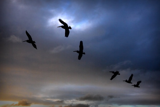 Pelicans at Rye beach.